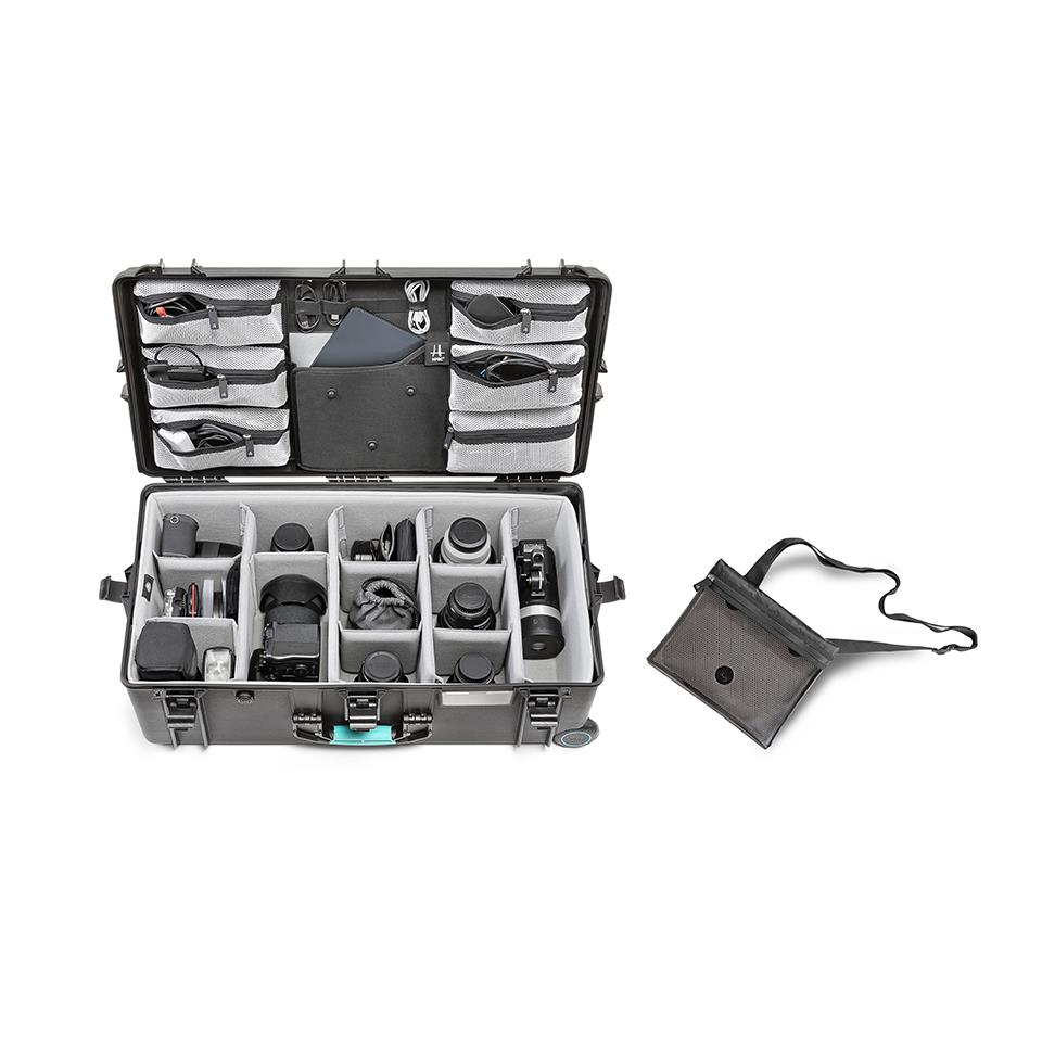 Internal organization is optimized with the Second Skin™ interior, designed to securely hold professional equipment while maximizing usable space. The lid organizer with zippered pockets and elastic webbing keeps cables, accessories, batteries and tools neatly arranged and instantly accessible.